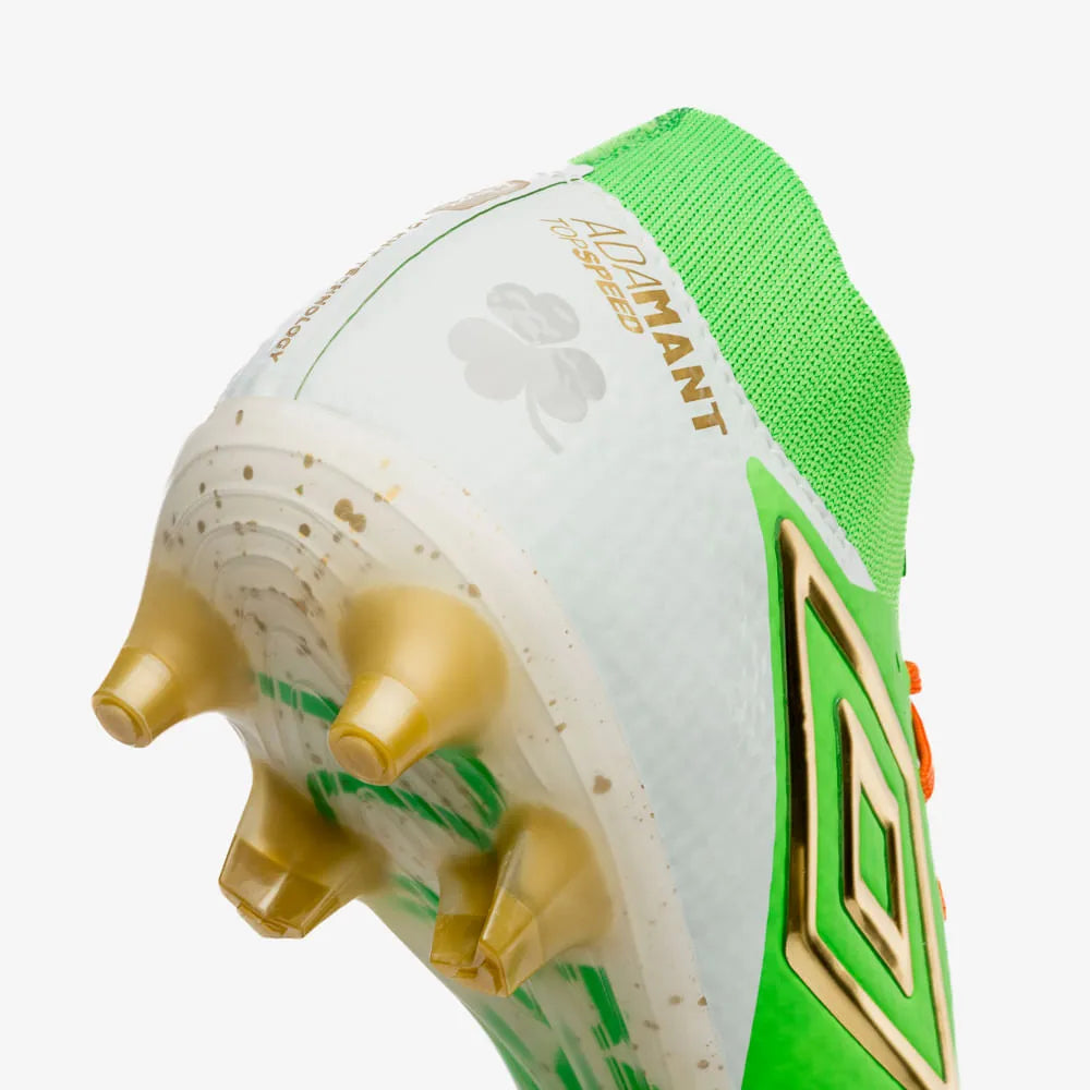 Celebre o Saint Patrick’s Day com a chuteira de edição especial Umbro Adamant Top Speed Pro – parte do exclusivo Good Luck Pack. Com design inspirado na Irlanda e detalhes exclusivos, este modelo profissional combina tradição e inovação para máxima performance em campo.